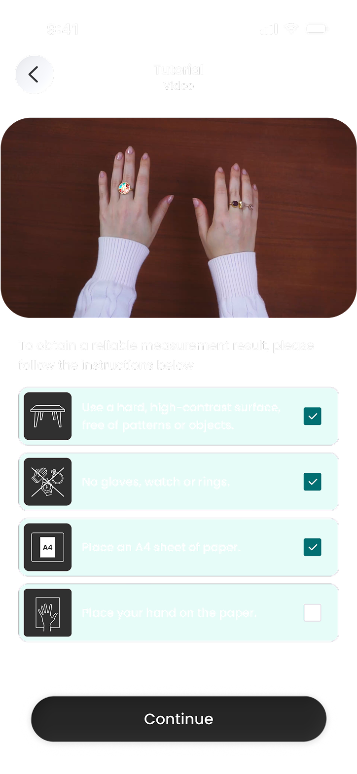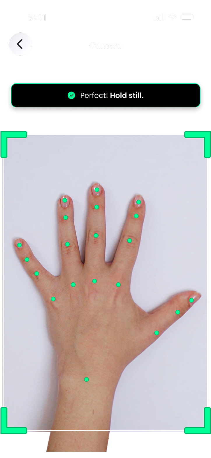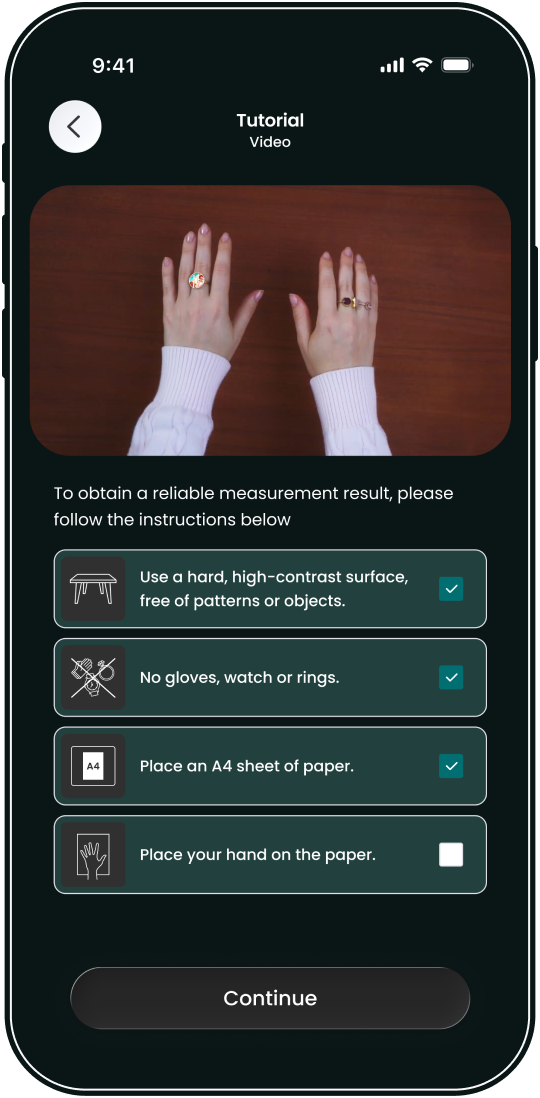 A white piece of paper, a flat surface and an Esenca-connected camera, that’s all your users need to obtain over 50 different precise hand measurements.