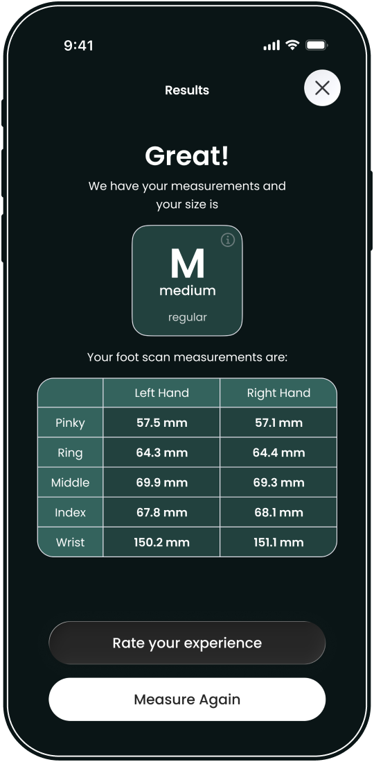 Take the stress and guesswork out of hand measurement processes. Invest in our sizing solution, ready to deliver fast, on-point and accurate insights and skyrocket your business.